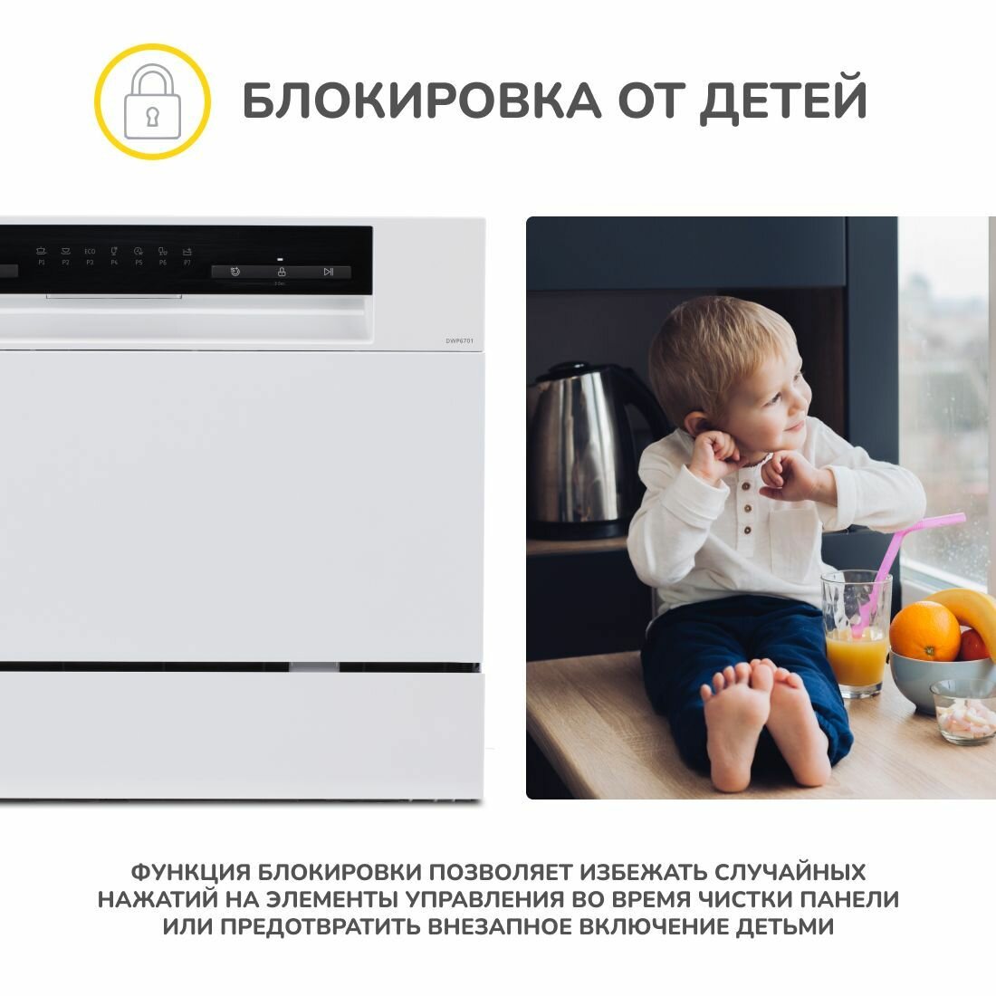 СохранитьНастольная посудомоечная машина Simfer , 6 комплектов , 7 программ , отсрочка старта , блокировка от детей интересное: