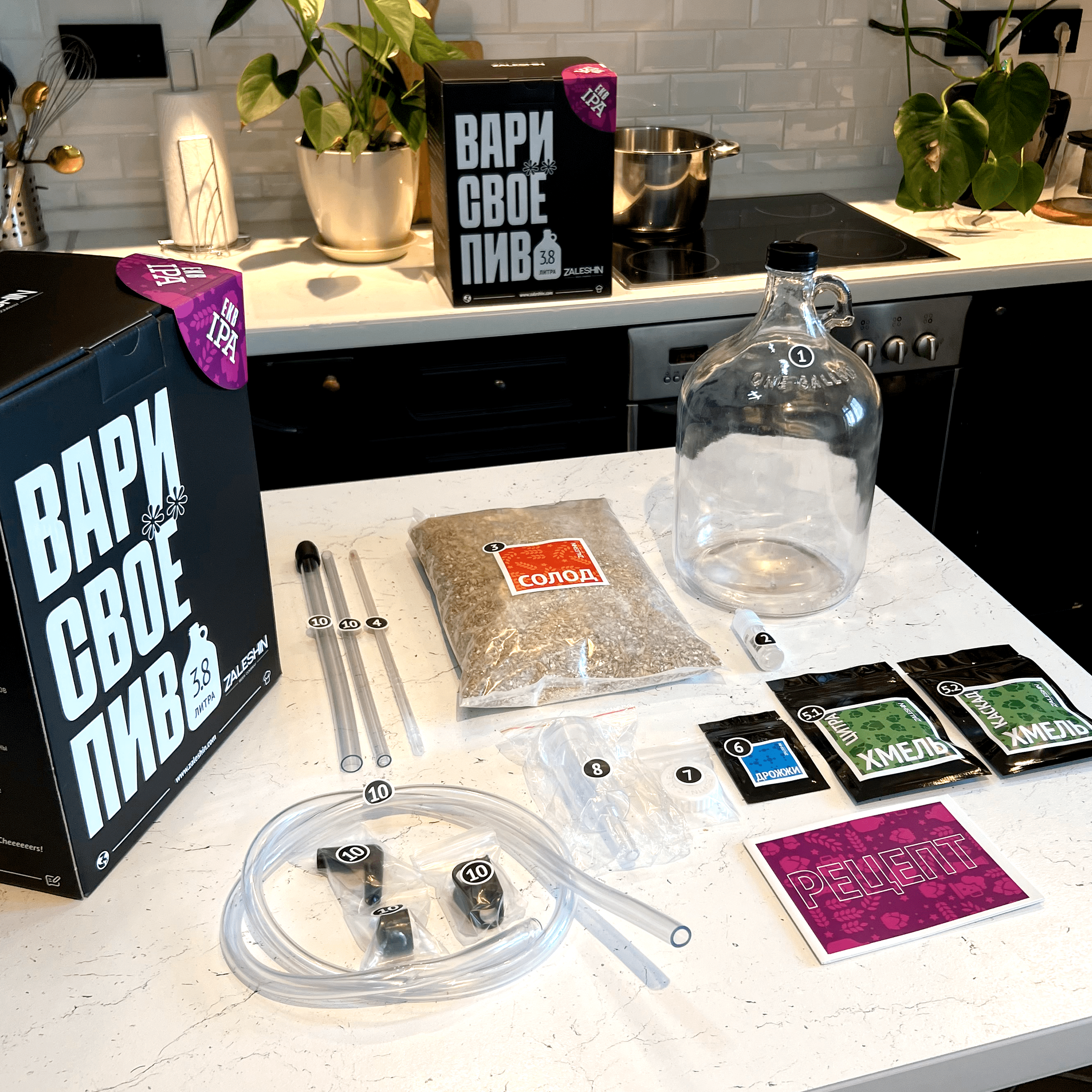 | Дополнительная информация | Кувшин стеклянный 1 галлон (1 шт. ), дезинфектор (10 мг.), солод (750 гр.), хмель (6 гр.), дрожжи пивные (1 гр.), термометр спиртовой (1 шт.), пробка (1 шт.), гидрозатвор (1 шт.), сифон для перелива (1 шт.) |