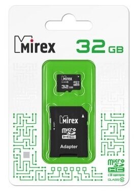Карта памяти microSDHC с адаптером MIREX 32GB (class 10)