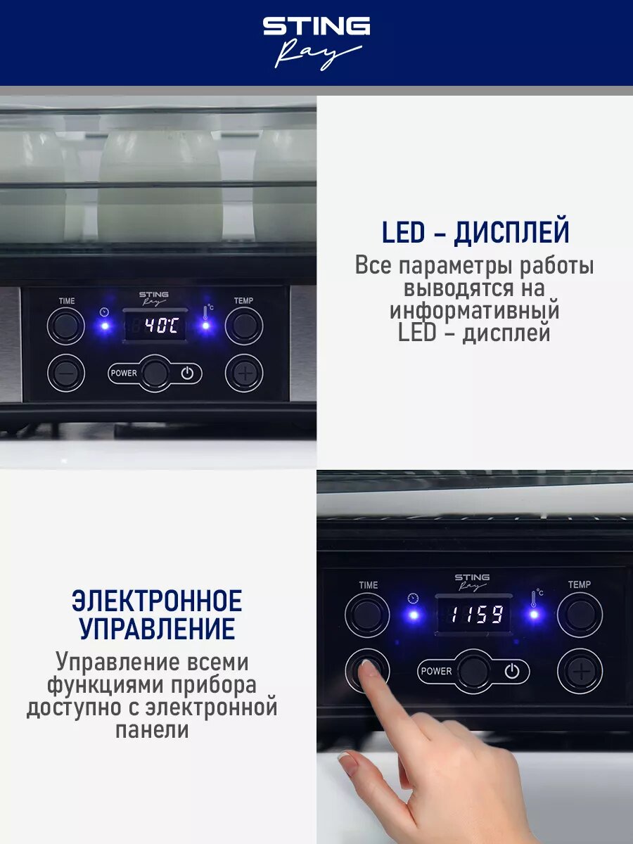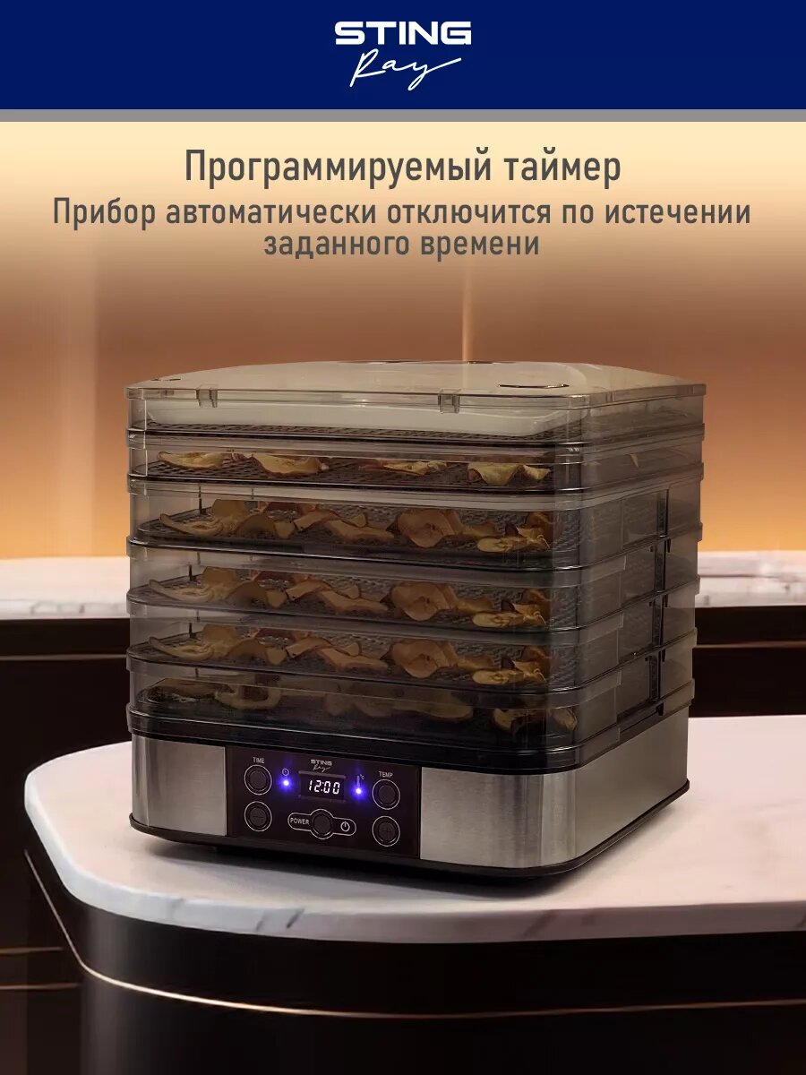 Дегидратор сушилка для овощей электросушилка STINGRAY ST-FD700A 8 поддонов (4 разборных + 2 для пастилы + 2 для ягод) черный жемчуг интересное: