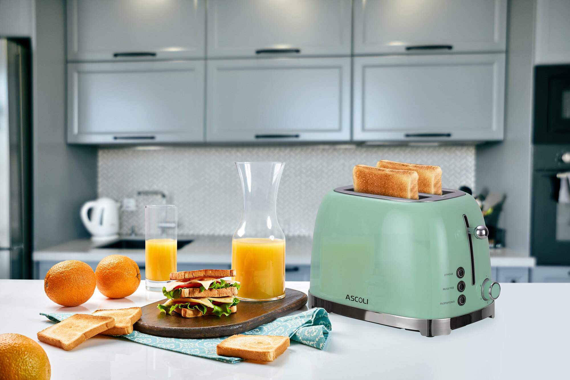 Тостер Ascoli AT-330CG, автоматическое центрирование, подогрев и размораживание, 815Вт, цвет мятный интересное: