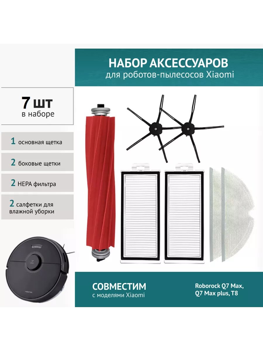 СохранитьКомплект черный 7 шт. фильтров и щеток для робот-пылесоса Xiaomi Roborock Q7, Q7 Max, Q7 Max plus, T8 интересное: