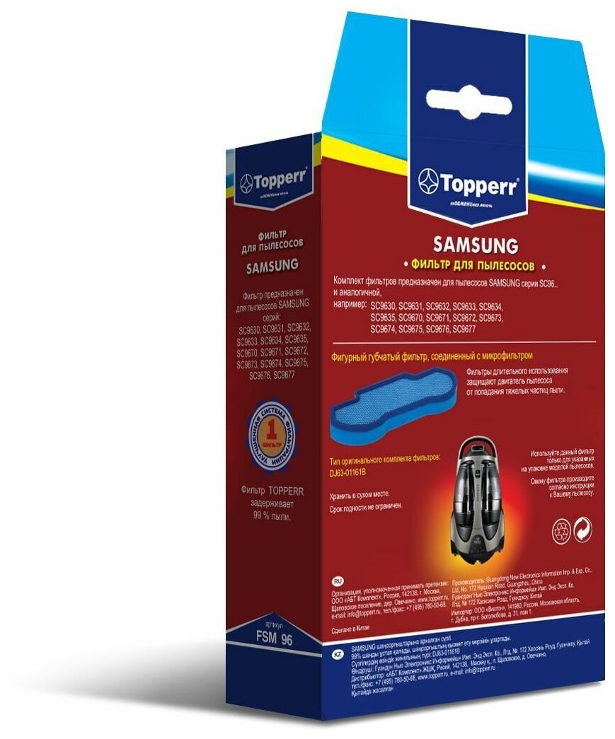 Фильтр Topperr FSM 96, для пылесосов Samsung SC, сменный, поролон, голубой, 1шт интересное: