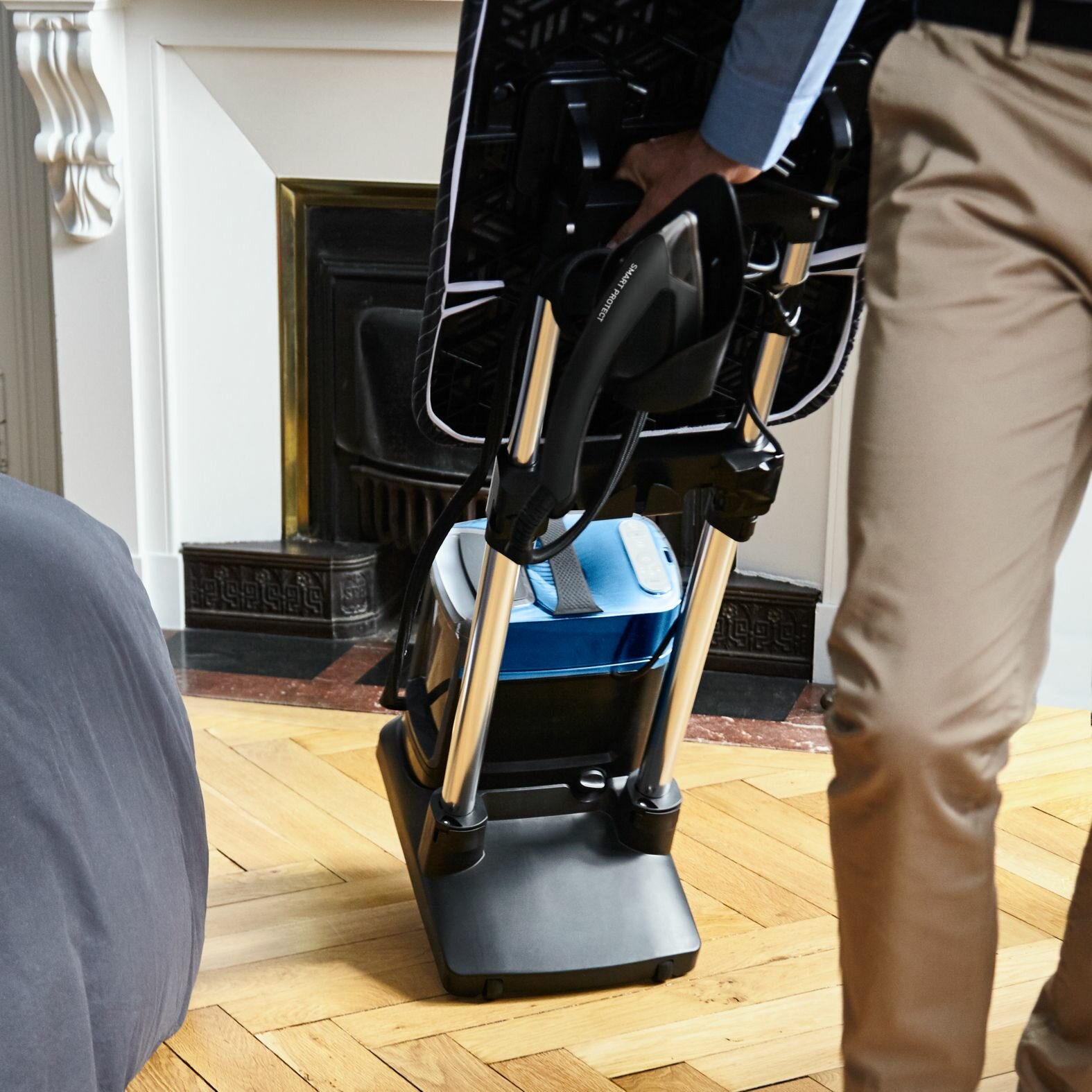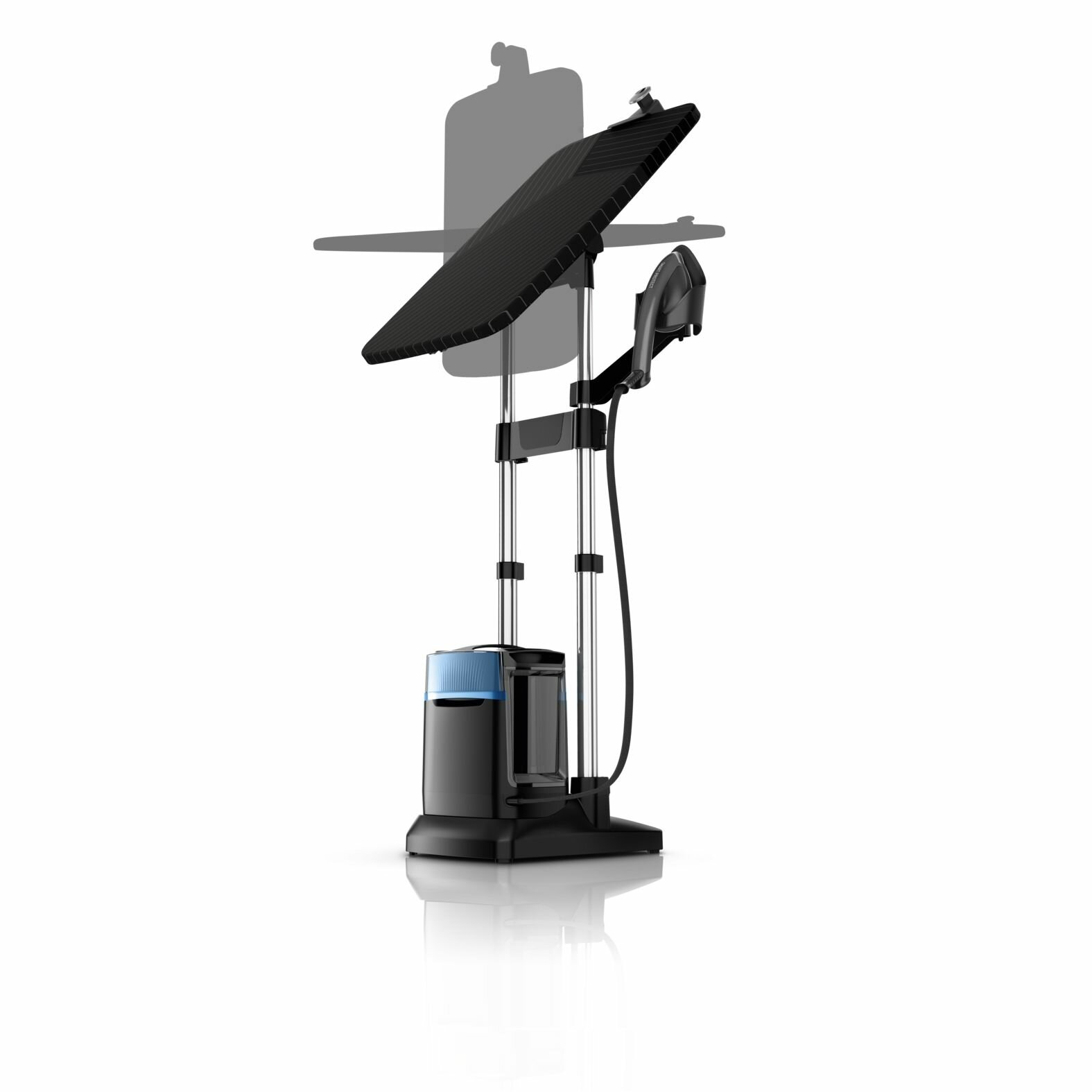 | Плюсы: | Мощный, простой в управлении, наличие гладильной доски помимо вертикального отпаривания |