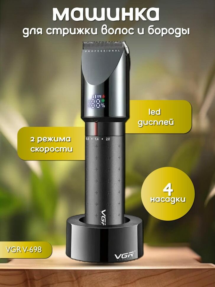 Профессиональная машинка для стрижки волос VGR V-698, Профессиональная машинка с насадками/Аккумуляторная/Окантовочная