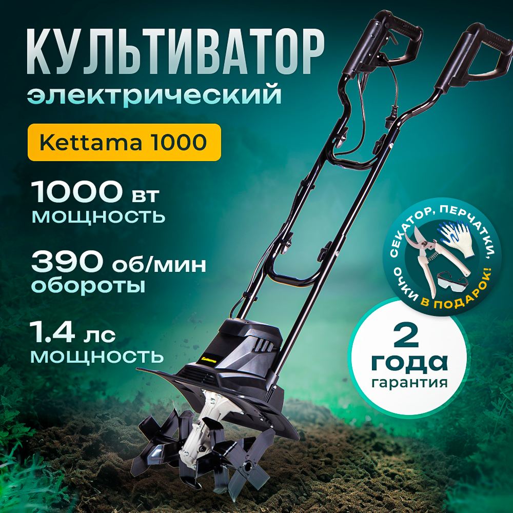 Купить Электрокультиватор Kettama ECO, 1000Вт, глубина вспашки 22см, ширина обработки 36см