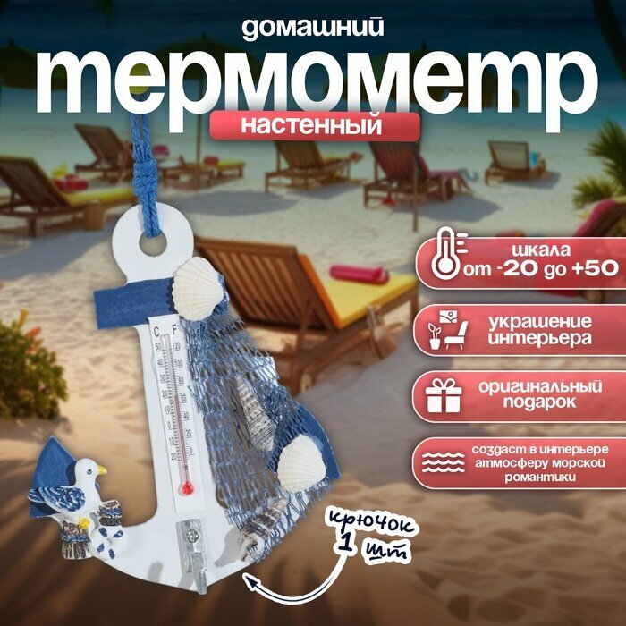 Термометр домашний настенный с крючком «Якорь с чайкой», 12×9.5×2.5 см интересное: