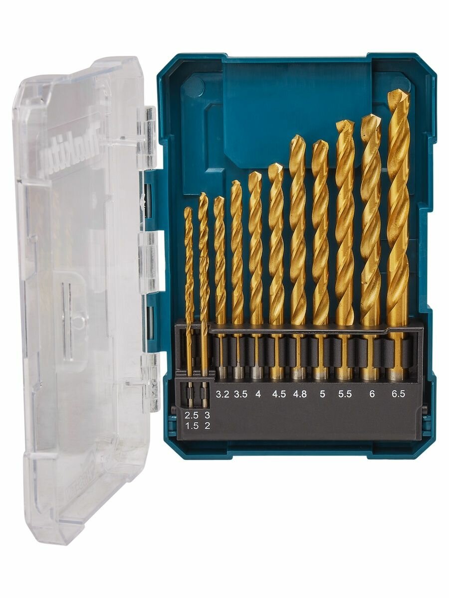 Набор сверл по металлу MAKITA HSS-TiN Economy, 13 шт. (1.5-6.5 мм, шаг 0.5 мм)