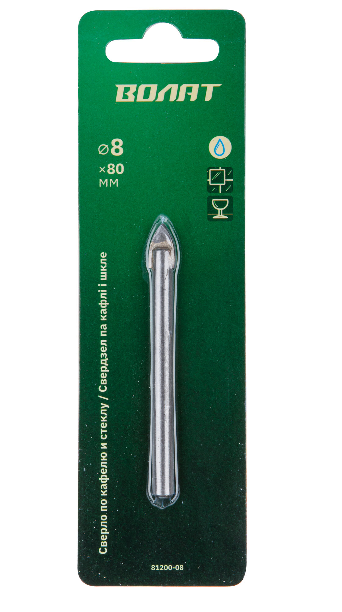 Сверло по кафелю и стеклу твердосплавное копьевидное 8х80 мм волат (81200-08)