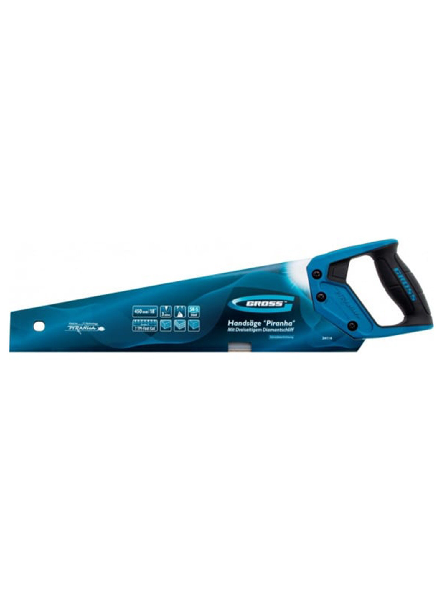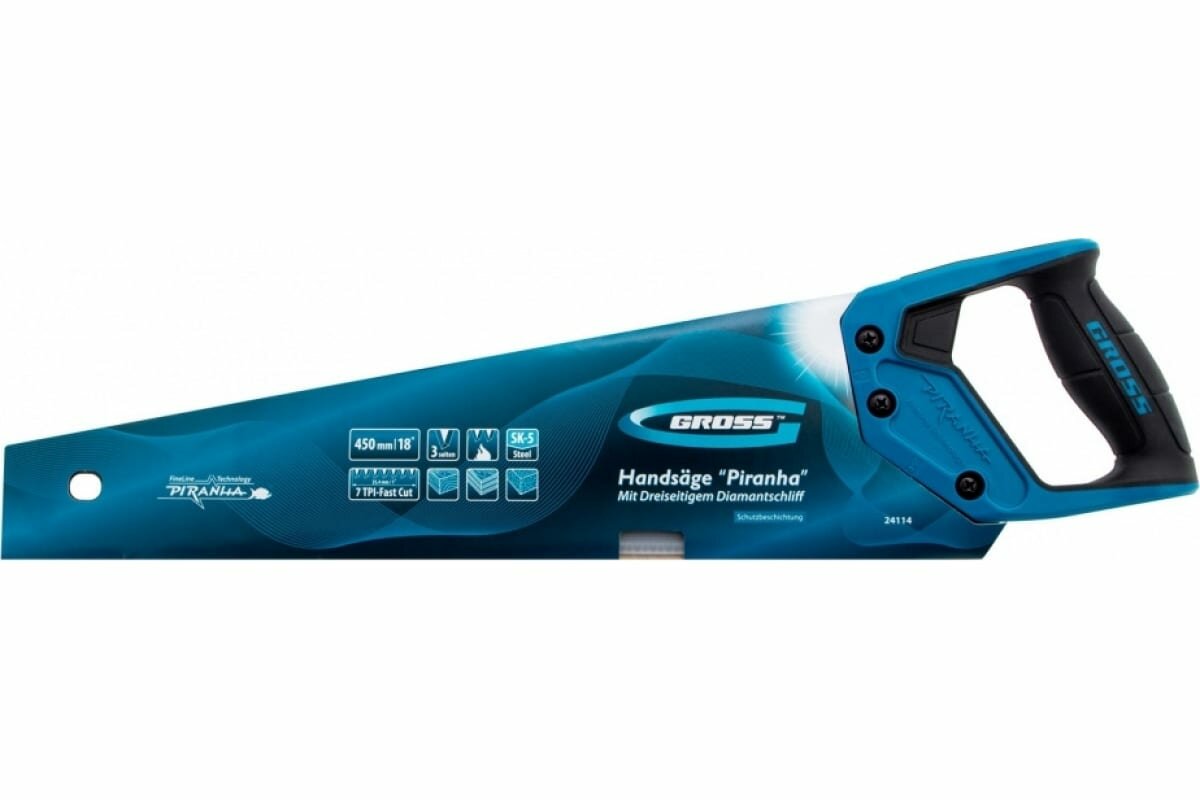 Ножовка по дереву Gross PIRANHA 450 мм, 7 TPI, 3D-зуб, тефл. покр.полотна, 2-х комп. рук-ка 24114
