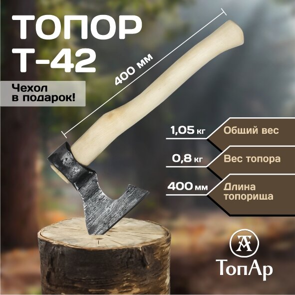 Топор "Охотничий" кованый с деревянным клином ручной сборки ТопАр 0,8 кг/Топорище из березы 400мм/обработано воском, в кожаном чехле интересное: