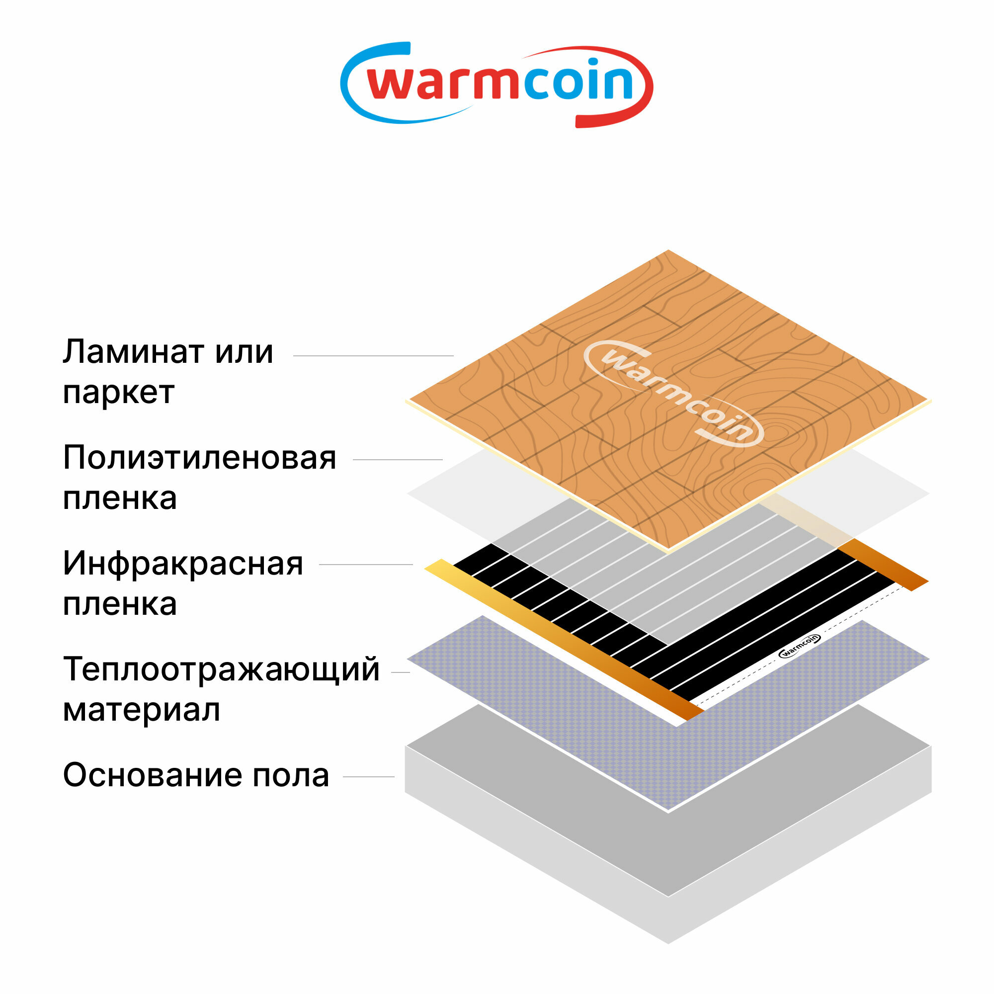 Теплый пол Warmcoin инфракрасный 80см 220Вт/м. кв. под ламинат, 1,5 м. п