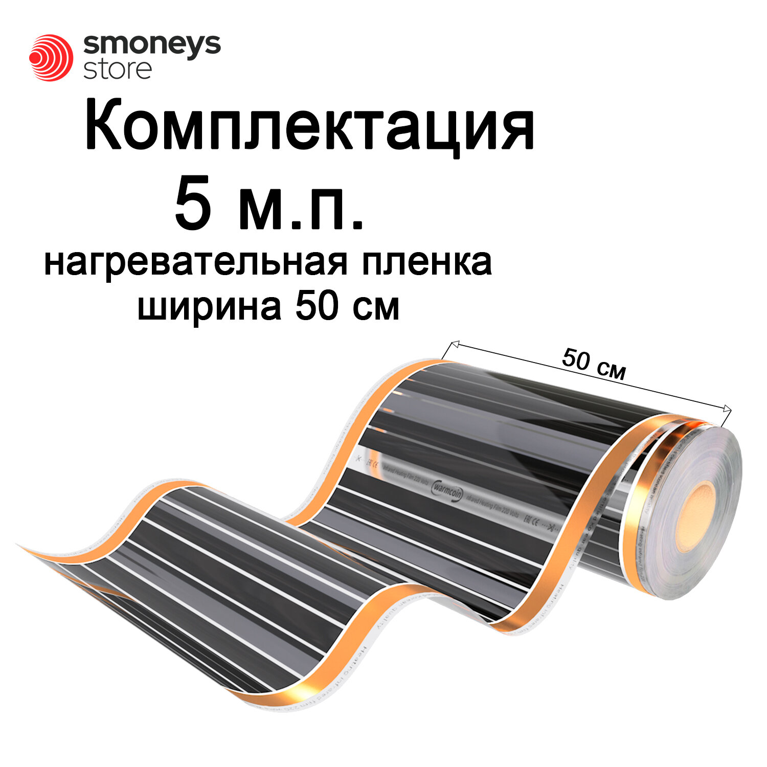 Теплый пол Warmcoin инфракрасный 50см 180Вт/м. кв. под ламинат, 5 м. п.