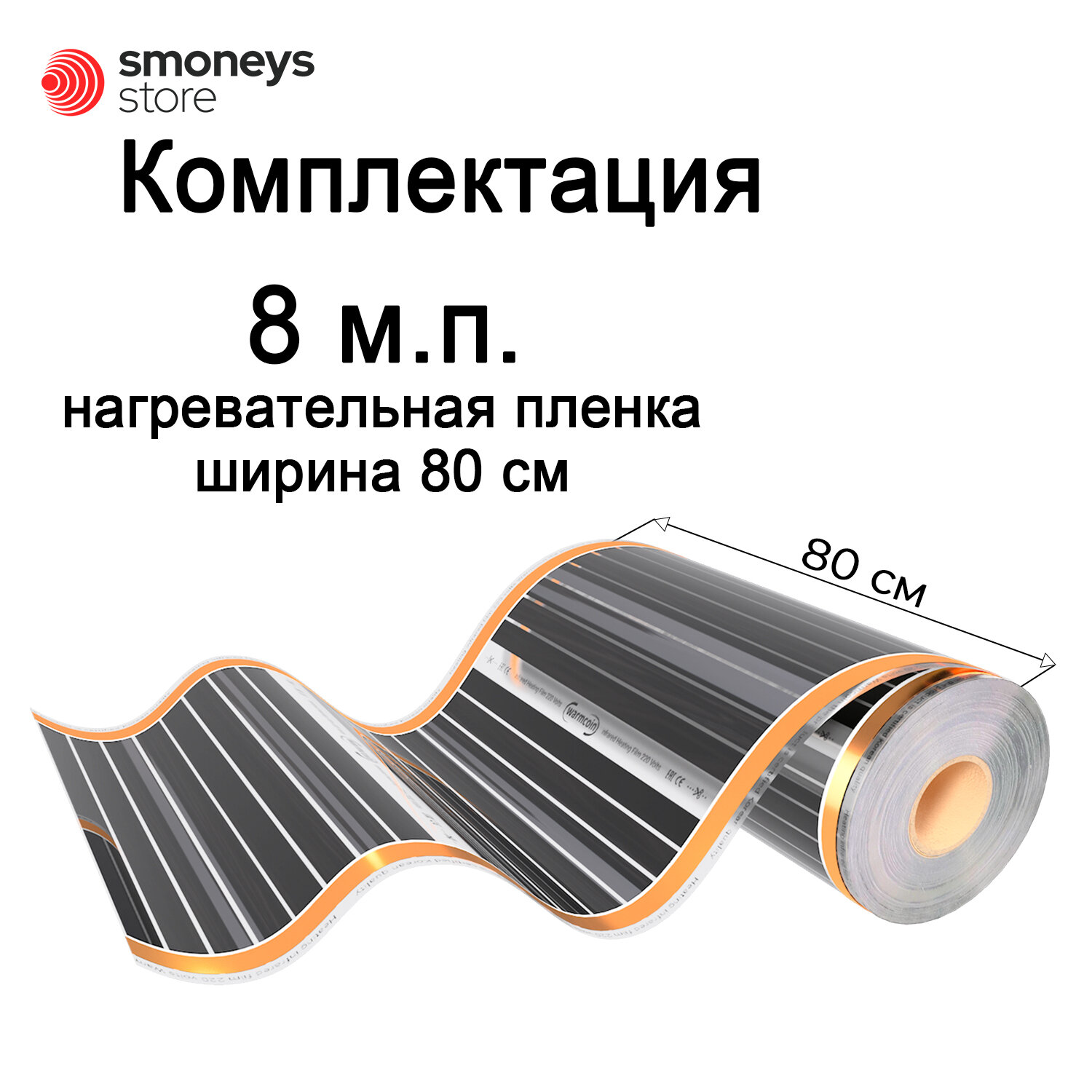 Теплый пол Warmcoin инфракрасный 80см 180Вт/м. кв. под ламинат, 8 м. п