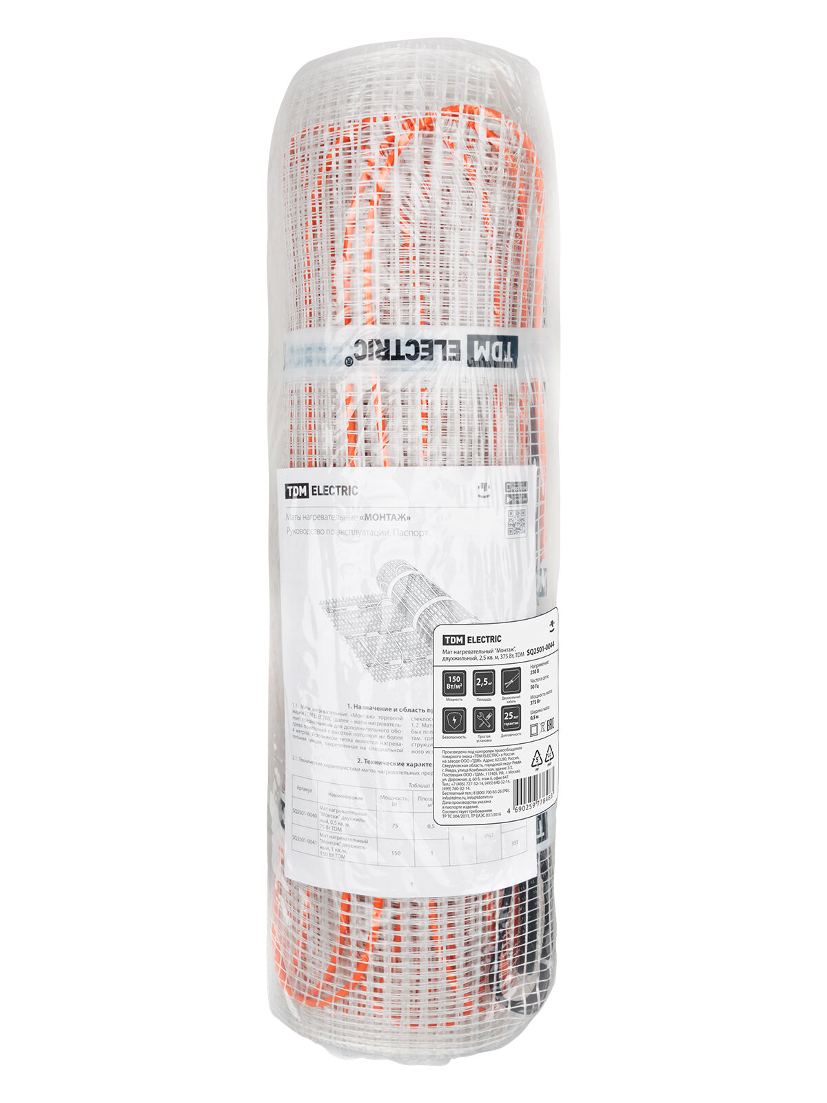 Мат нагревательный "Монтаж", двухжильный, 2,5 кв. м, 375 Вт, TDM