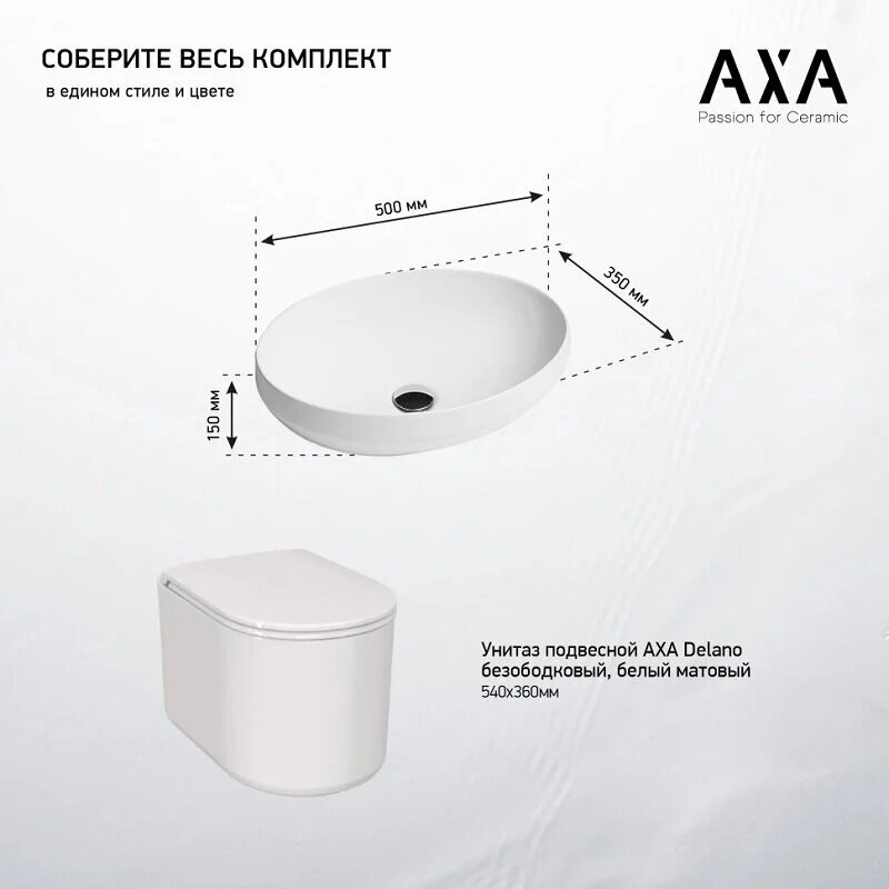Раковина-чаша AXA Decus 8510012 50x35 см, накладная, белый матовый