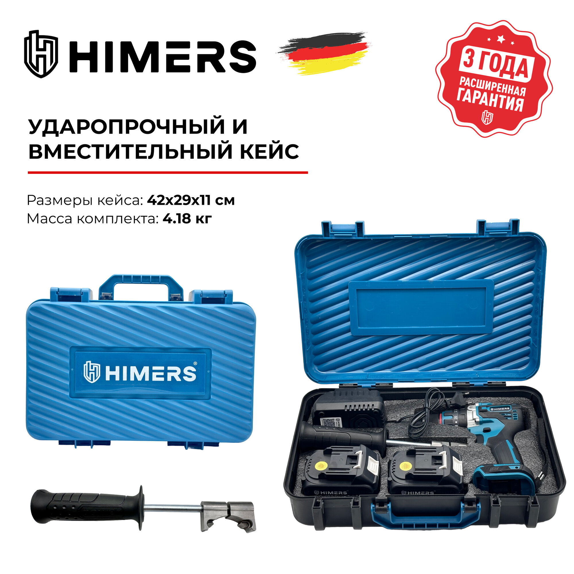 Бесщеточный шуруповерт HIMERS DF60В-BL аккумуляторный 18V, 2 АКБ по 3 А. ч, 60 Н. м, кейс сталь