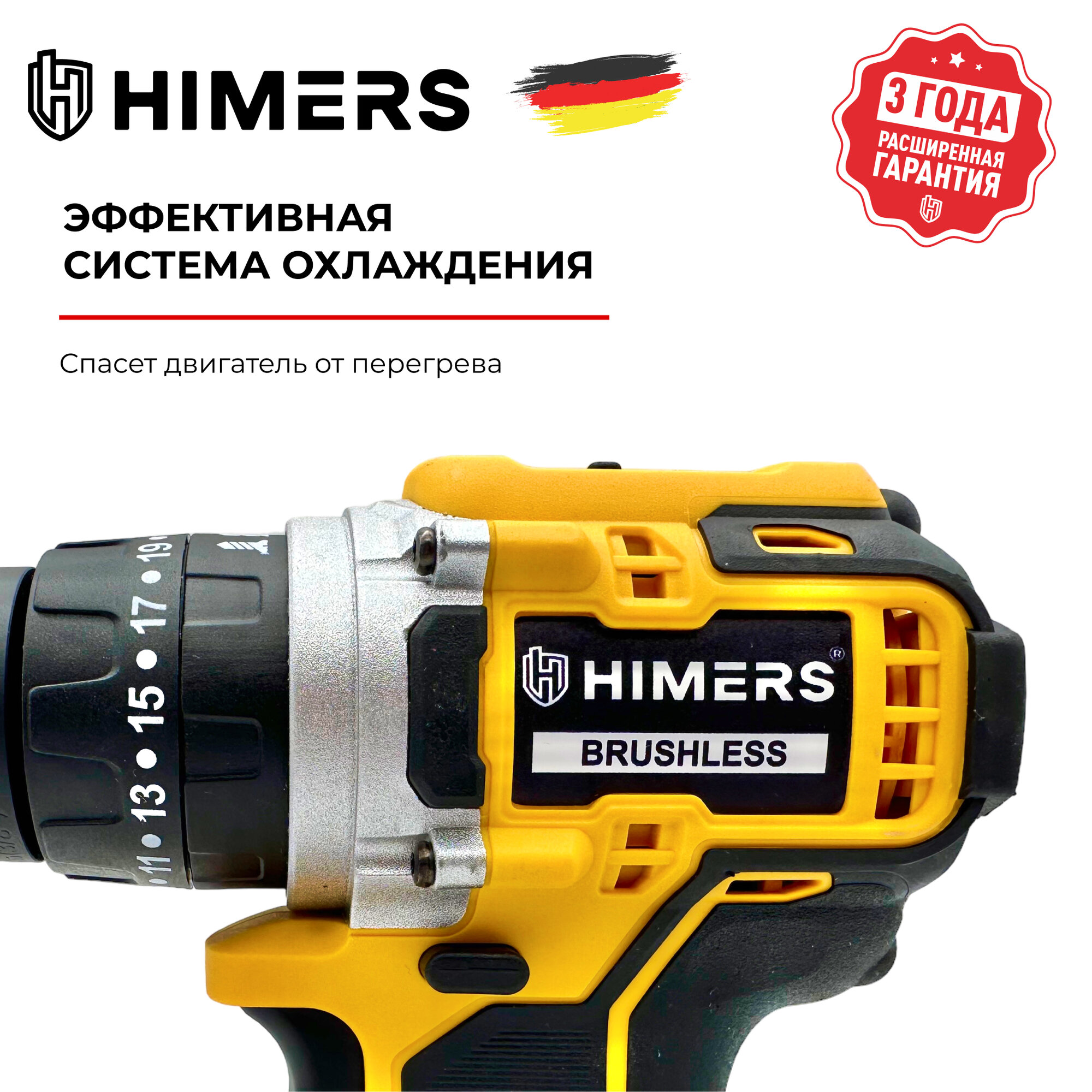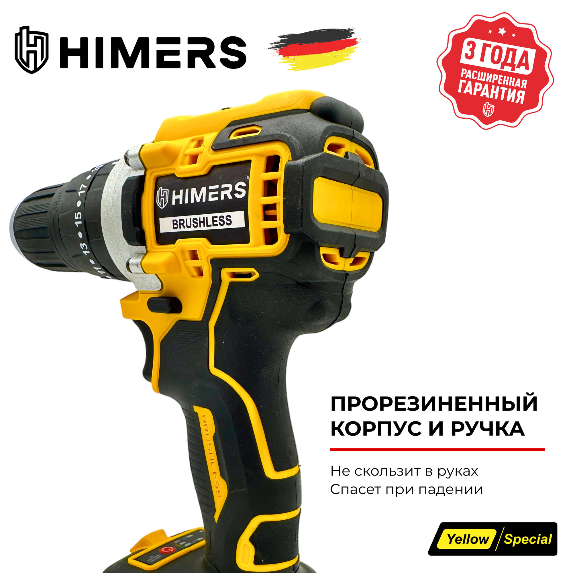 Бесщеточный шуруповерт HIMERS DF65Y-BL аккумуляторный 18V, 2 АКБ по 3 А.ч., 65 Н.м., 10мм патрон, Версия Yellow special / Кейс / многофункциональный для сверления, закручивания 18в