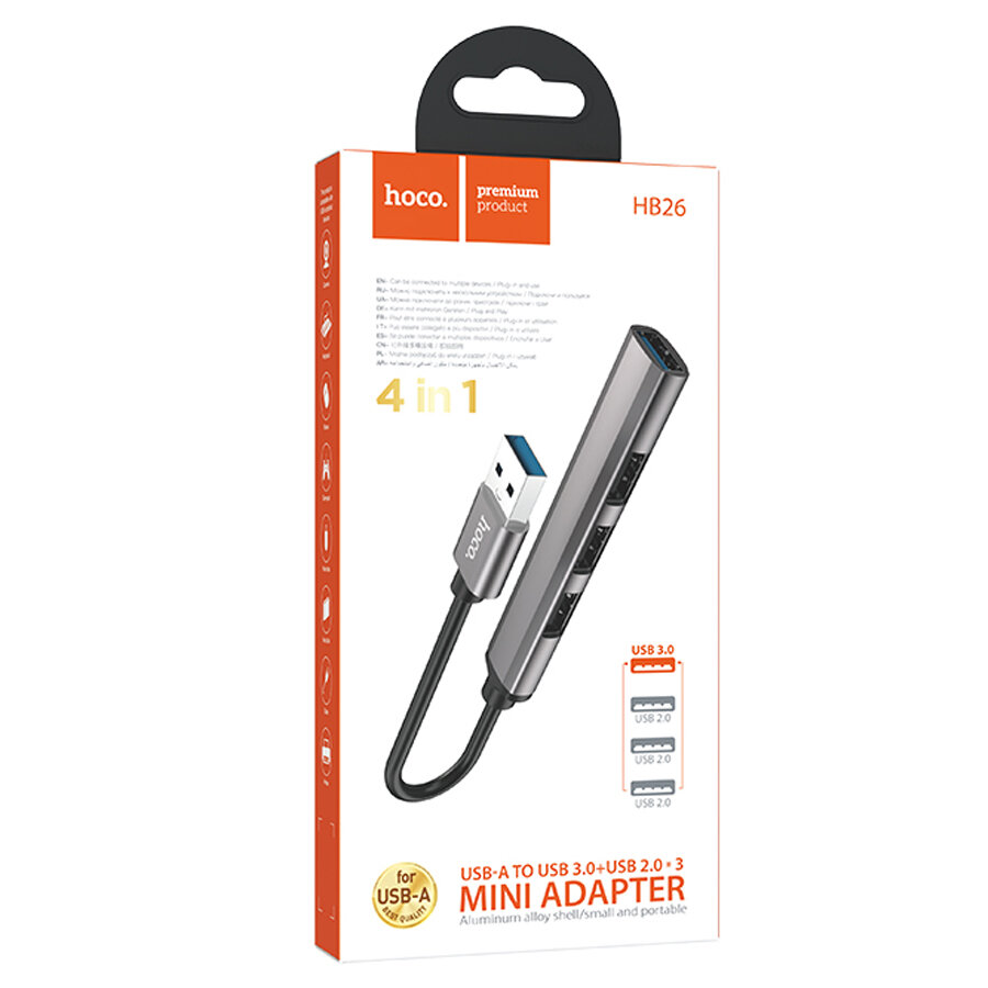 Купить USB HUB разветвитель HOCO HB26 4 в 1 USB3.0 (m) - USB3.0 (f) + 3xUSB2.0 (f), серый металлик