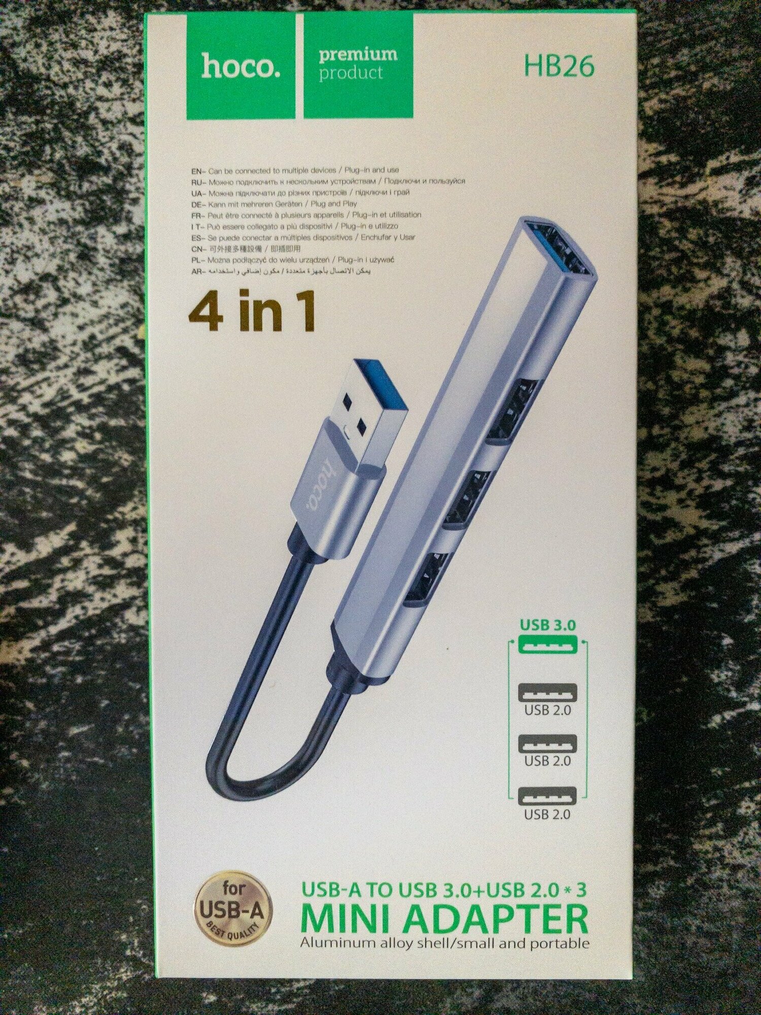 СохранитьUSB HUB разветвитель HOCO HB26 4 в 1 USB3.0 (m) - USB3.0 (f) + 3xUSB2.0 (f), серый металлик интересное: