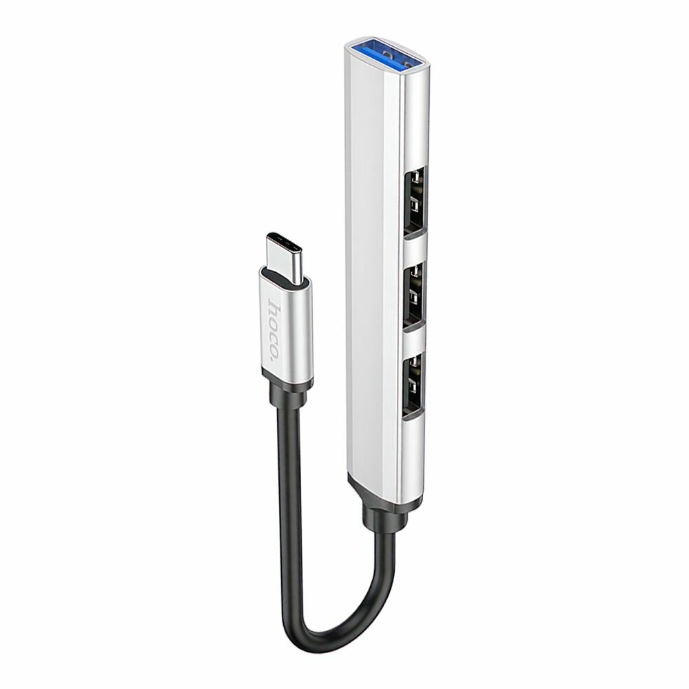 Хаб HUB Type-C на 4USB HB26 HOCO серебро