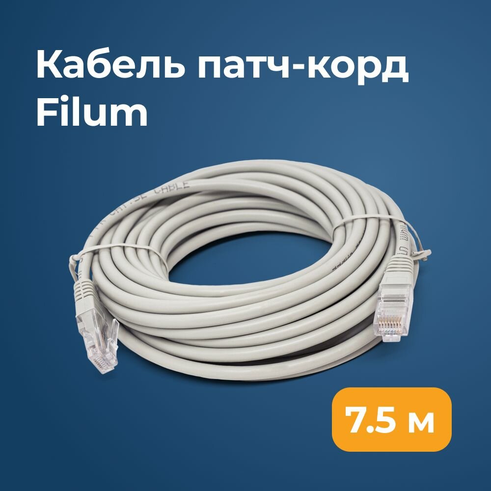Купить Кабель Ethernet патч-корд Filum кат. 5e 7.5м, серый, U/UTP, /FL-U5-C-7.5M/