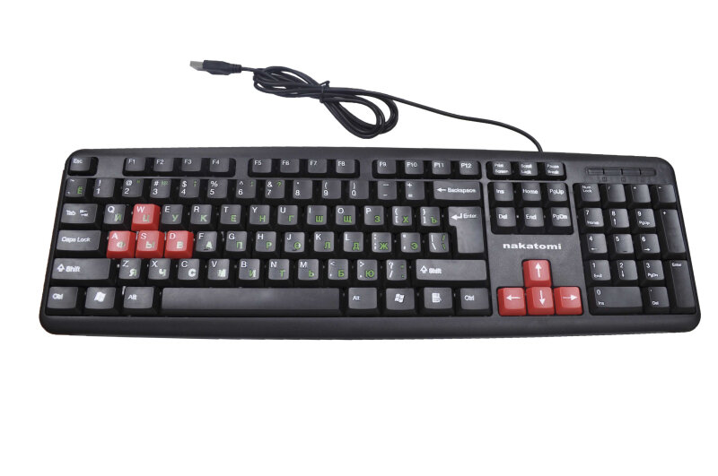 Клавиатура Nakatomi KN-02U Navigator black-red, стандартная, красные игровые клавиши, чёрная