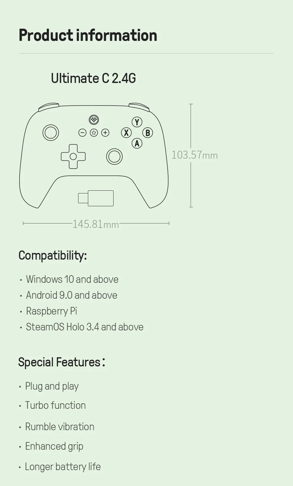 Беспроводной геймпад 8bitdo-Ultimate C, 2.4G Green интересное: