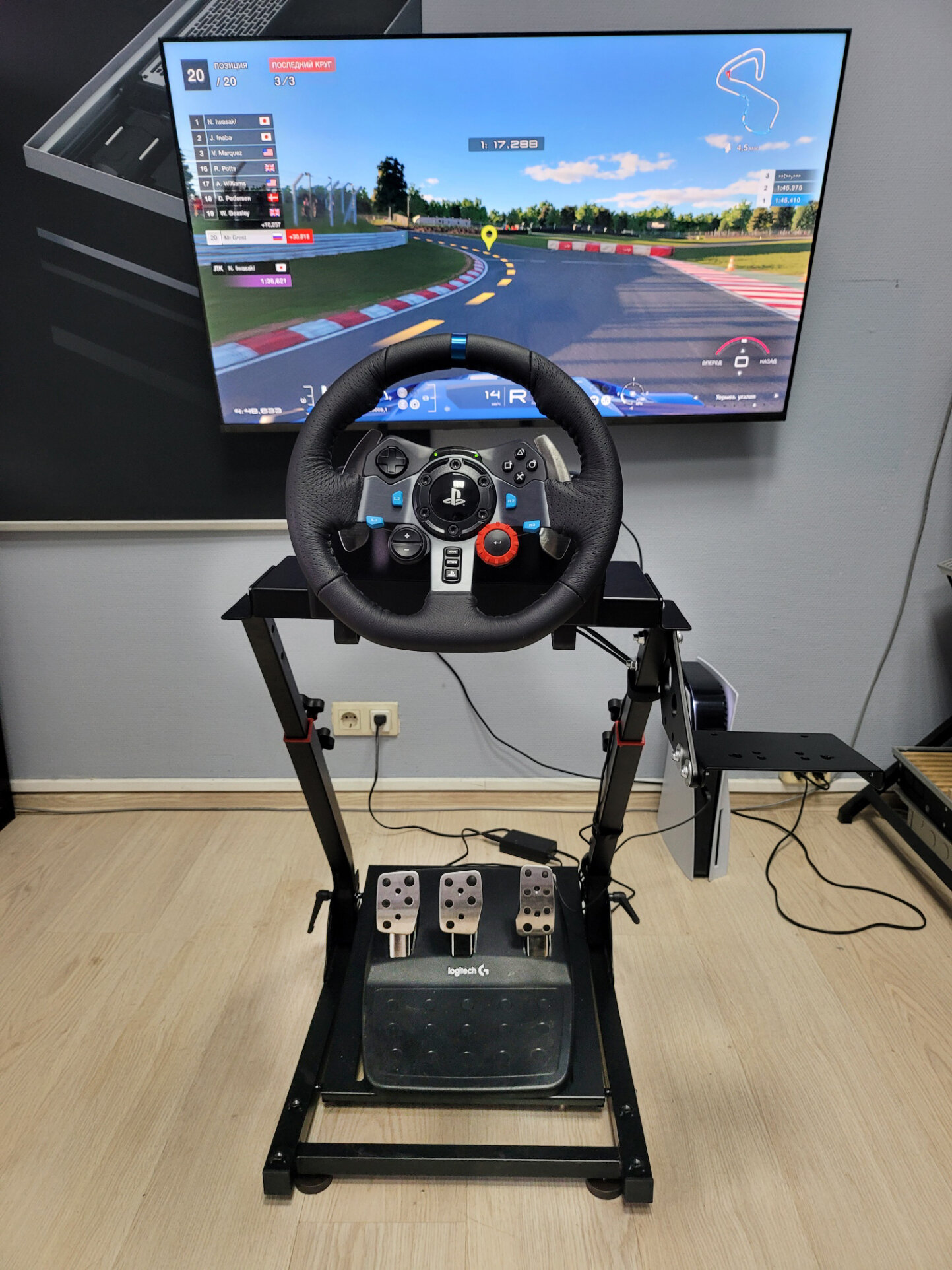 Конструкция складная, но для этого надо открутить 2 винта (они откручиваются без инструментов, у них что-то вроде встроенных поворотныз рычагов). Покупал для руля/педалей/кпп Logitech G923 - всё подошло идеально, в комплекте все болты для крепления есть. Покупка себя оправдала, доволен даже больше, чем ожидал. Рекомендую. PS: к этой конструкции крепится ещё какая-то, видимо вторая часть с креслом. скорее всего можно докупить отдельно, не искал. но или на крайняк замерить нужные размеры и заказать у ребят на заводе. (это если захочется низкое автокресло с регулировкой расстояния). на этой стойке вынимаются заглушки и там есть крепления для такой штуковины. |