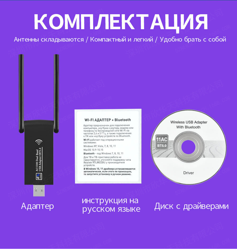 Двухчастотный адаптер Bluetooth 5.0 и Wi-Fi usb приемник 2 в 1 интересное: