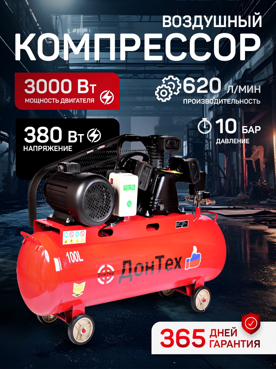 Компрессор воздушный Дон-Тех КМ-600/100, 100 л ресивер, 600 л/мин, 10бар, 3кВт