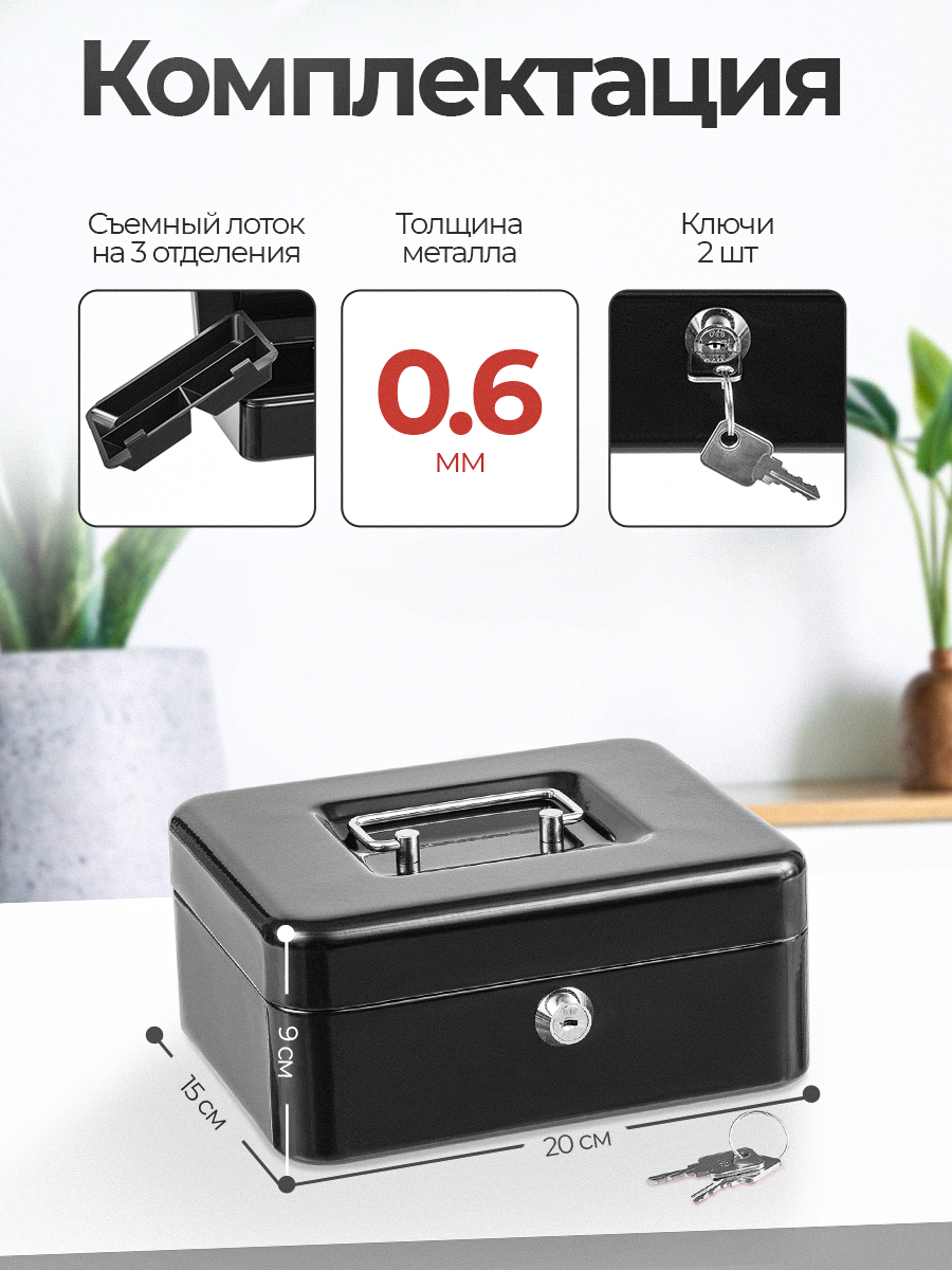Купить Ящик для денег SAFEBURG Keeper-20 Black, переносной сейф, 20х15х8см. Тайник, шкатулка для денег и ценностей, 3 отделения