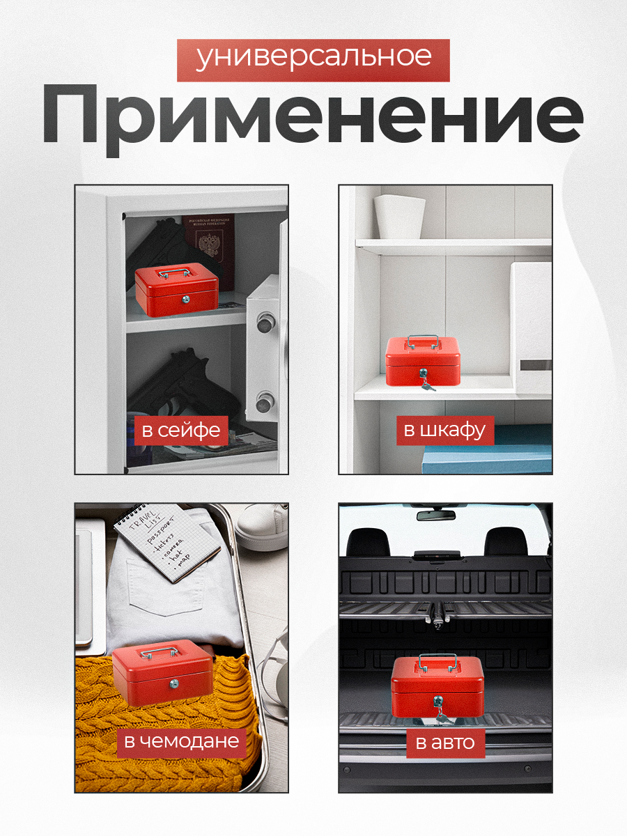 Ящик для денег SAFEBURG Keeper-20С Red Gloss, переносной сейф, кэшбокс, 3 отделения, шкатулка для ценностей, тайник