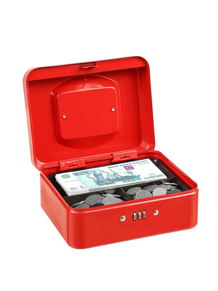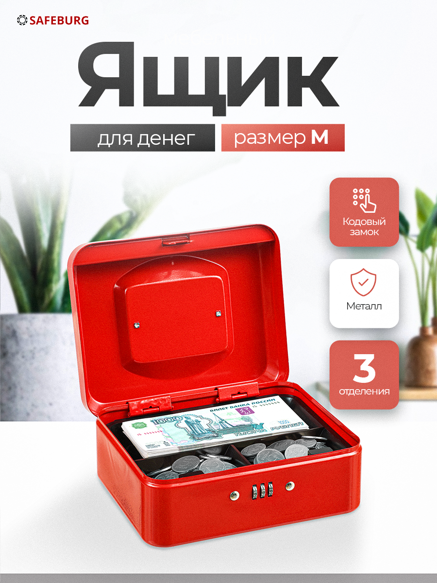 Купить Ящик для денег SAFEBURG Keeper-20С Red Gloss, переносной сейф, кэшбокс, 3 отделения, шкатулка для ценностей, тайник