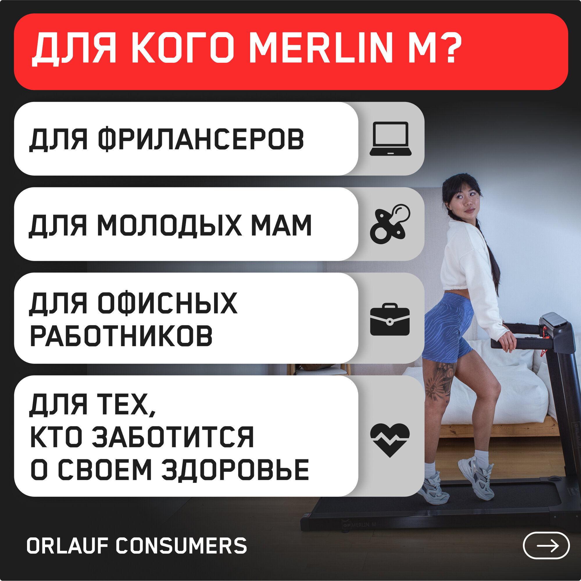 Беговая дорожка для дома Orlauf Merlin M / Электрическая / Складная / Ультра компактная / до 130 кг интересное: