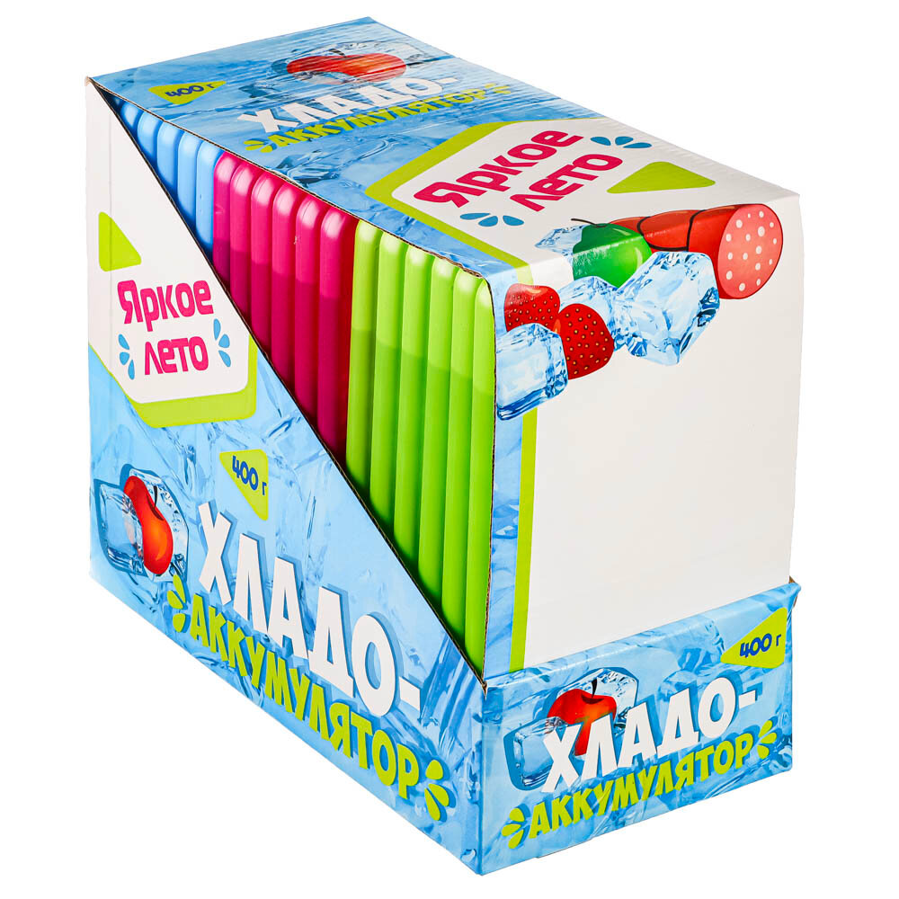 Купить Аккумулятор холода Яркое лето, пластик, цвет зеленый/синий, розовый,24х14 см, 400 г
