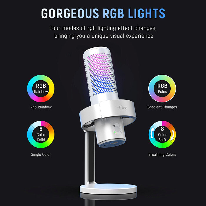 Конденсаторный USB-микрофон Fifine AmpliGame A9 (White) RGB подсветка интересное: