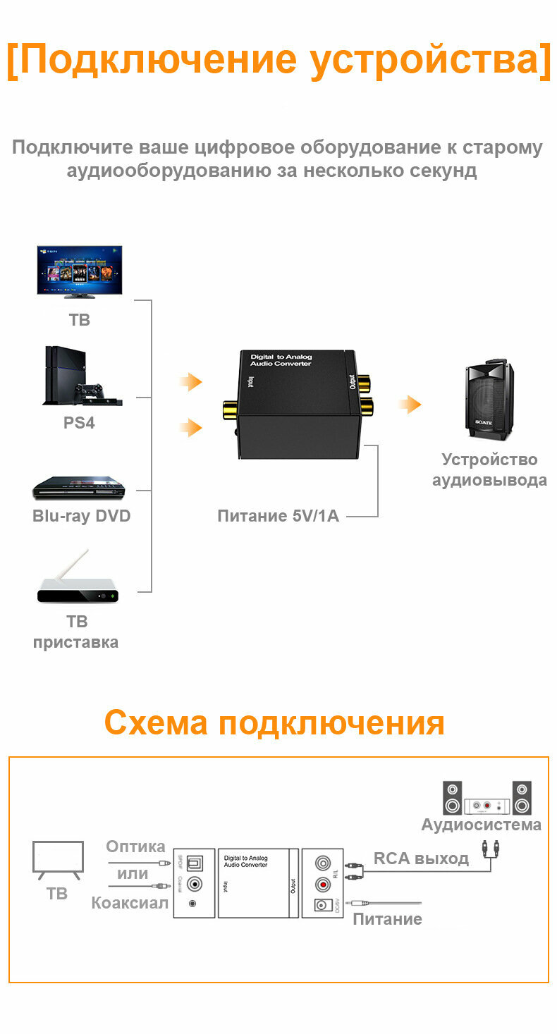 Переходник адаптер аудио конвертер ЦАП Digital to Analog. Optical / TosLink / Coaxial - RCA 01DA интересное: