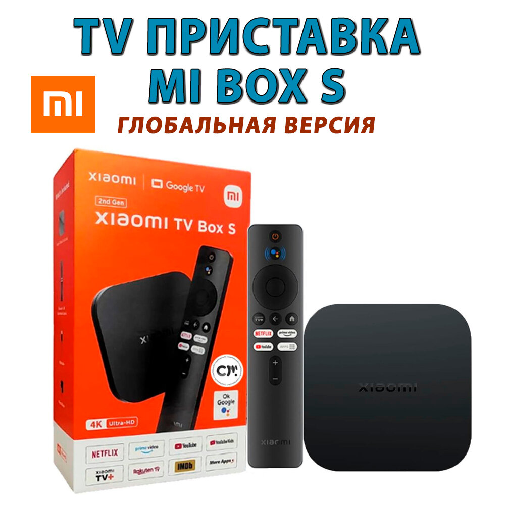 ТВ приставка Xiaomi TV Box S 2nd Gen, пульт с голосовым поиском