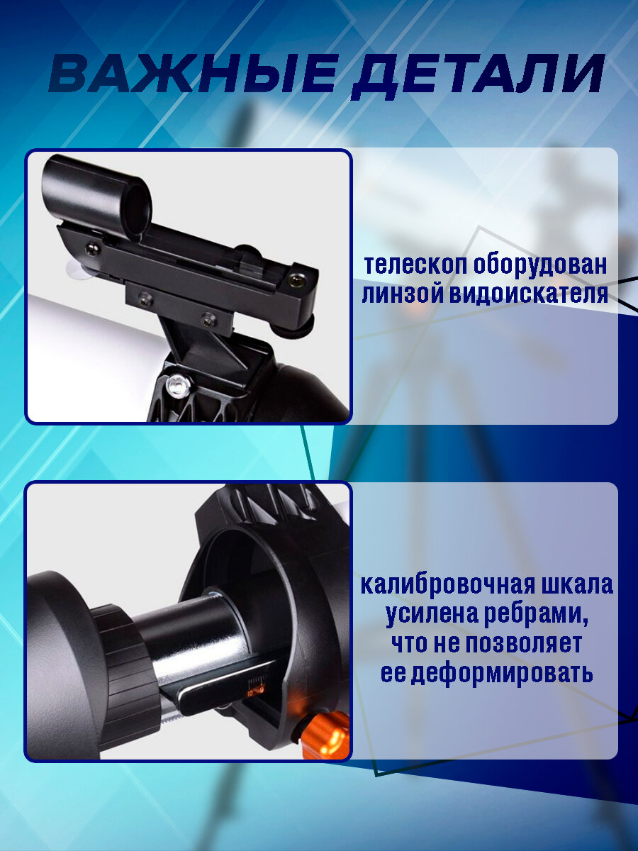 | Плюсы: | Товар пришёл отлично упакованный, все в отдельных коробках и отдельных чехлах. Сами детали телескопа подогнаны отлично, их качество при низкой цене товара тоже хорошее, никаких люфтов при сборке нет. Сборка телескопа и настройка легкая, даже инструкция особо и не нужна. |