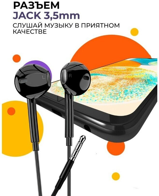 Наушники проводные / GQbox / Проводные Jack 3,5 / Гарнитура для Apple iPhone и Android / Для телефона / Черные 1 шт