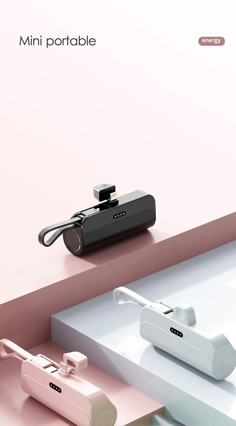 Внешний аккумулятор 2в1 5000 mAh основной Type-C и шнур lighting , Powerbank MINI (Розовый)