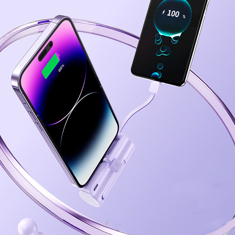 Внешний аккумулятор 2в1 5000 mAh основной lighting и шнур Type-C, Powerbank MINI (Сиреневый)