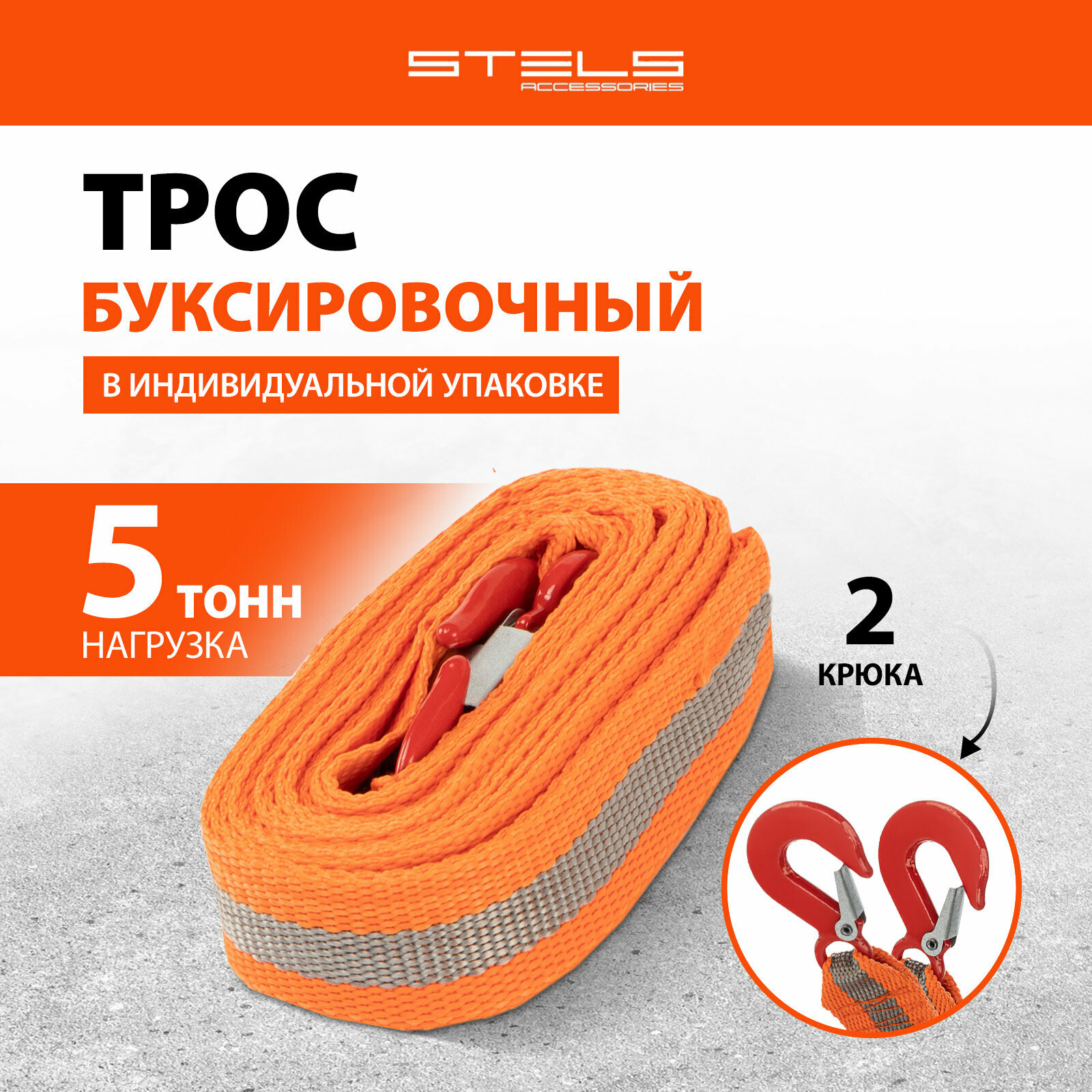Трос буксировочный 5т, 2крюка Stels