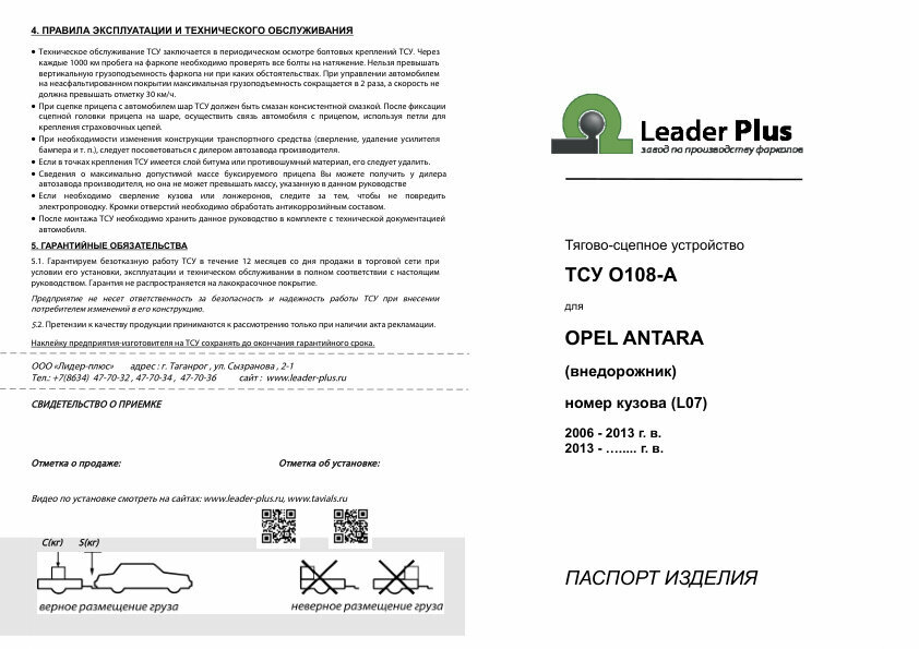 | Совместимые автомобили | Opel Antara (2006-...) |