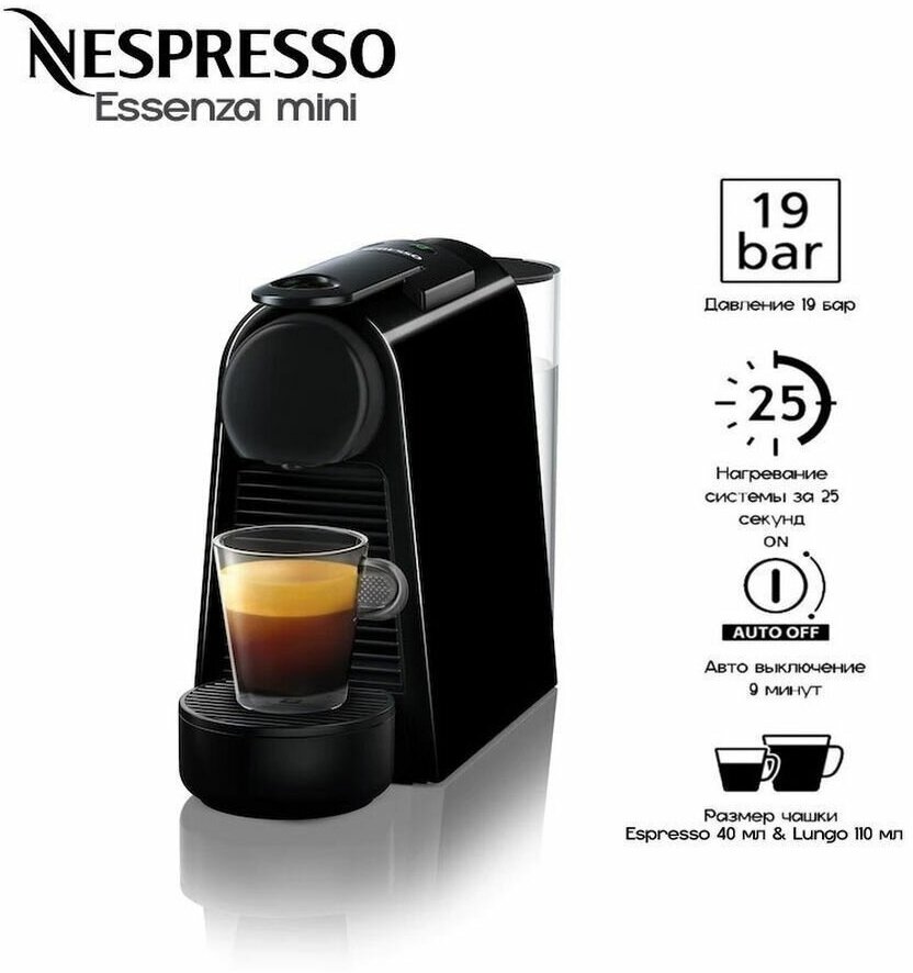 Кофемашина капсульная Nespresso Essenza Mini D30, черная, 19 бар интересное: