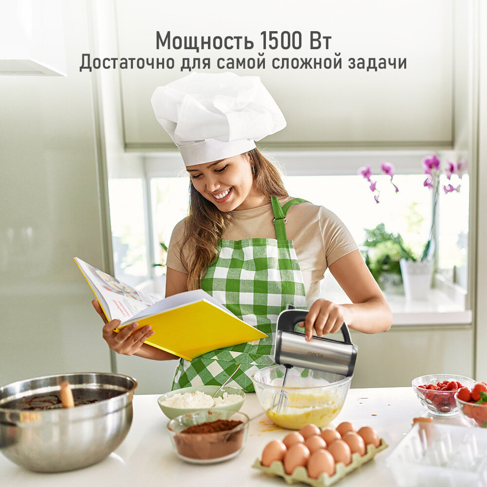 Миксер ручной MARTA MT-MX1519A, 5 скоростей, ручной, 1000Вт, черный интересное: