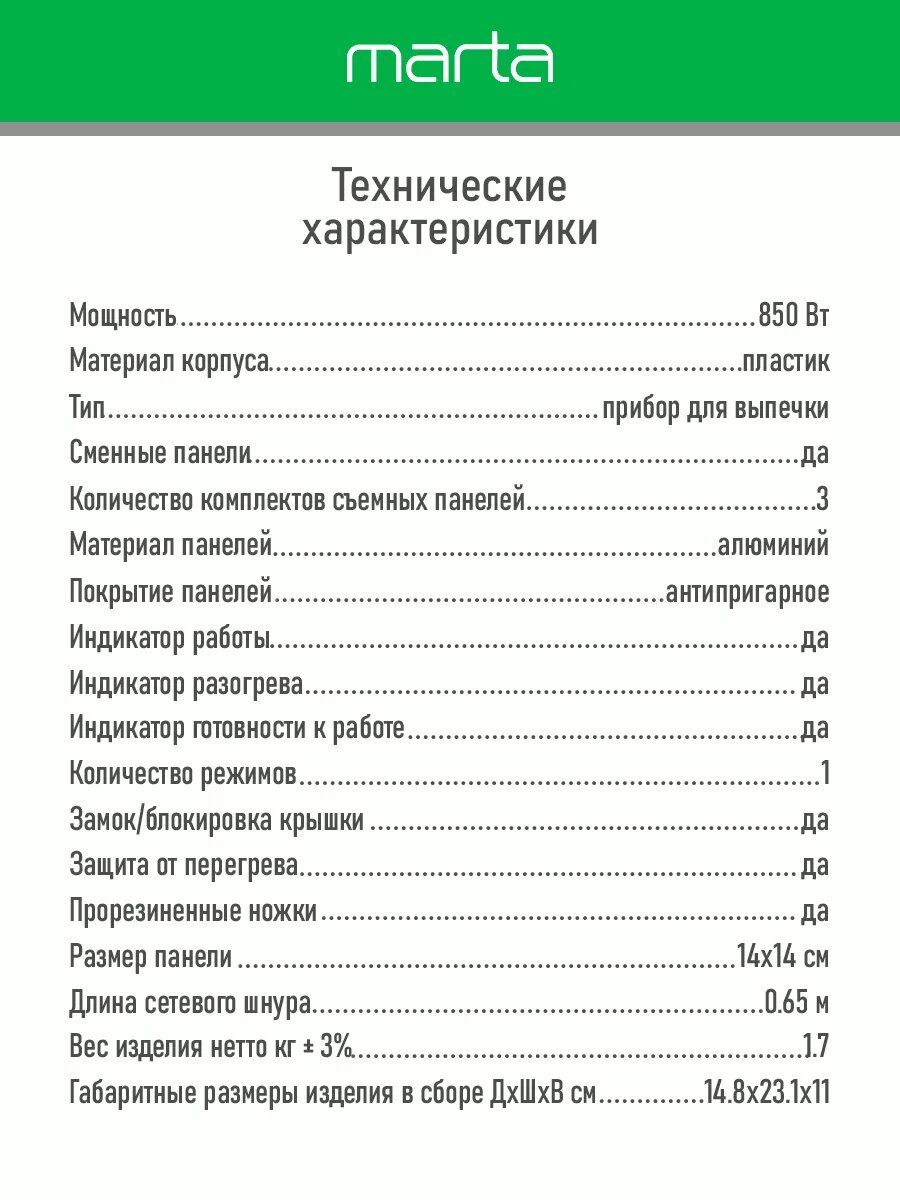 СохранитьПрибор для выпечки MARTA MT-SM1737B 3 в 1 черный жемчуг интересное: