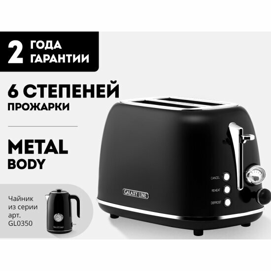 Тостер мощность Galaxy LINE GL 2912 черный (1200 Вт, функция автоматического центрирования тоста)