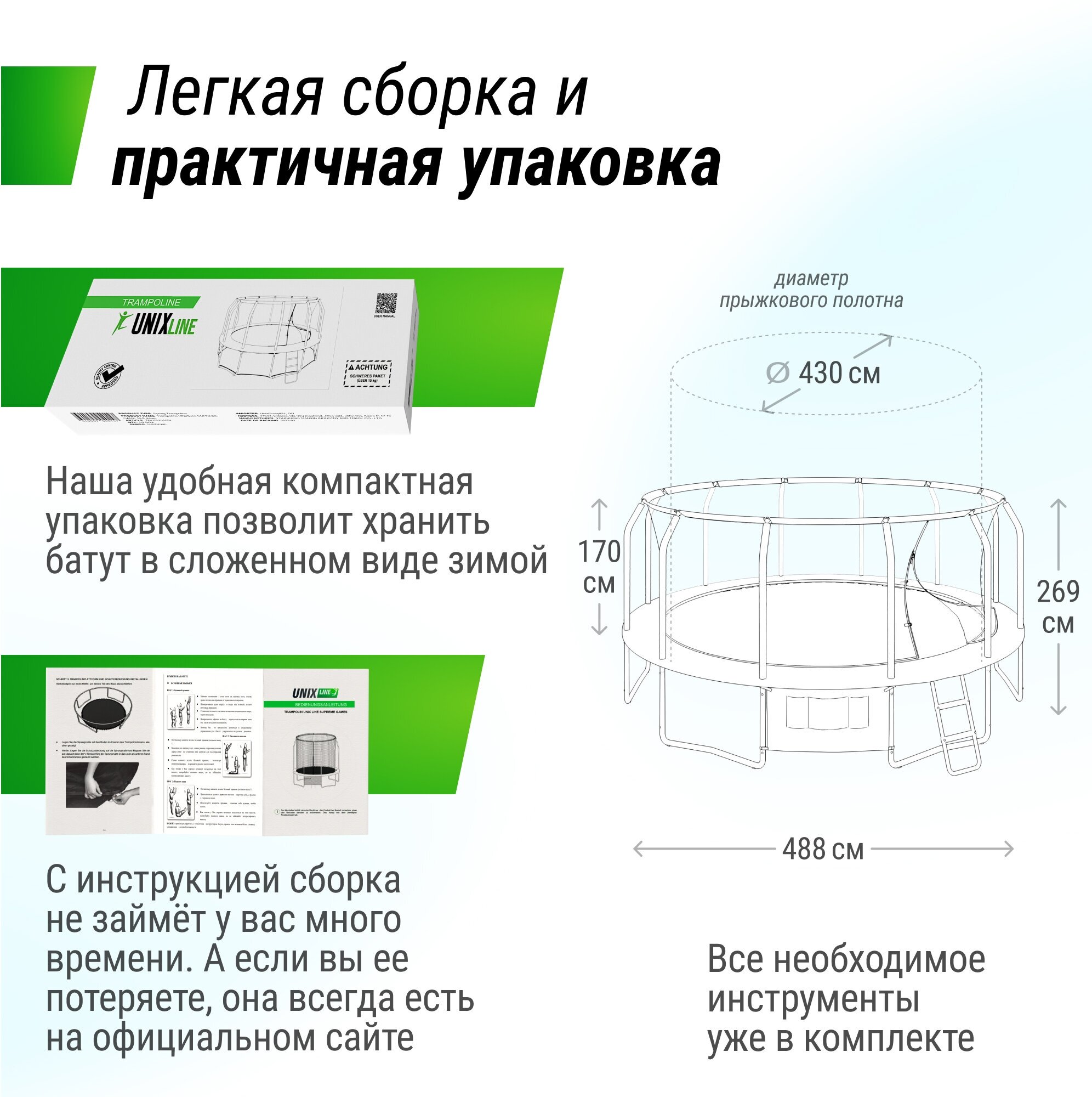 | Диаметр батута | 488 см |